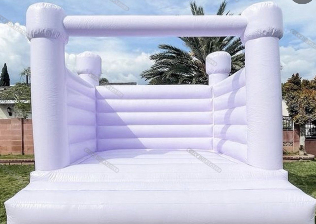 This modern white bounce house is the perfect blank canvas to include at your wedding, birthday, family gathering, and more. Designed with custom organic balloon displays, this unique setting will elevate your next event!
